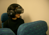 Virtual reality exposure therapy places the client in a computer generated airplane where they "experience" the various aspects of flying. The client wears a head-mounted display with small TV monitors and stereo earphones to receive both visual and auditory cues.